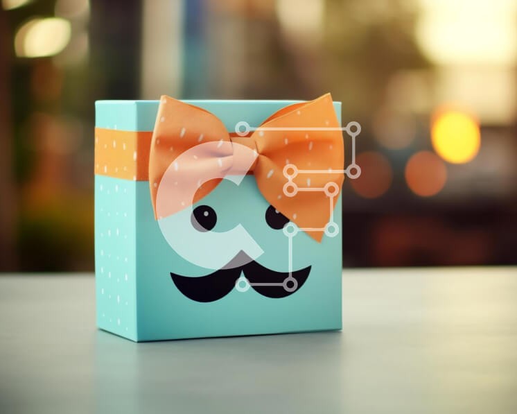 Υπάρχει δυνατότητα προσωποποίησης με δική σας φωτογραφία και προσαρμογής διαστάσεων κατόπιν παραγγελίας. Το συγεκεριμενο Puzzle 10x10 cm – 25 κομμ παρουσιαζει Η εικόνα δείχνει ένα μπλε κουτί δώρου στολισμένο με πορτοκαλί φιόγκο και πρόσωπο σε σχήμα μουστάκι στο μπροστινό μέρος. Το κουτί είναι διακοσμημένο με ζωηρές πορτοκαλί και λευκές ρίγες, καθιστώντας το ένα εντυπωσιακό αντικείμενο. Μπορεί να χ