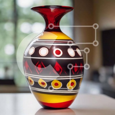 Υπάρχει δυνατότητα προσωποποίησης με δική σας φωτογραφία και προσαρμογής διαστάσεων κατόπιν παραγγελίας. Το συγεκεριμενο Puzzle 10x10 cm – 25 κομμ παρουσιαζει Η εικόνα παρουσιάζει ένα κόκκινο, κίτρινο και μαύρο βάζο που κάθεται πάνω από ένα ημιτελές ξύλινο τραπέζι. Είναι διακοσμημένο με διάφορα γεωμετρικά σχήματα και μοτίβα, τα οποία προσθέτουν στη συνολική οπτική έλξη του κομματιού. Υπάρχουν πολλ