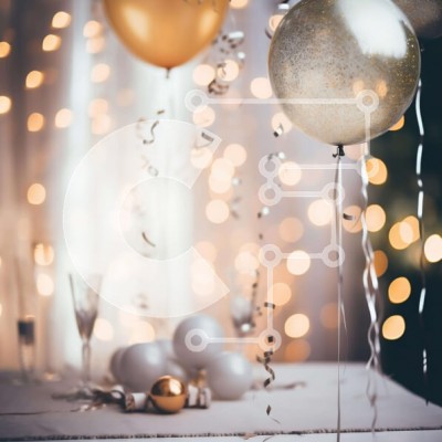 Υπάρχει δυνατότητα προσωποποίησης με δική σας φωτογραφία και προσαρμογής διαστάσεων κατόπιν παραγγελίας. Το συγεκεριμενο Puzzle 10x10 cm – 25 κομμ παρουσιαζει Η εικόνα αποτυπώνει μια εορταστική σκηνή στολισμένη με χρυσά και ασημένια μπαλόνια, αστραφτερά κομφετί και διακοσμητικά στοιχεία που δημιουργούν μια χαρούμενη ατμόσφαιρα. Το φόντο είναι θολό με ζεστά, λαμπερά φώτα που ενισχύουν την εορταστικ