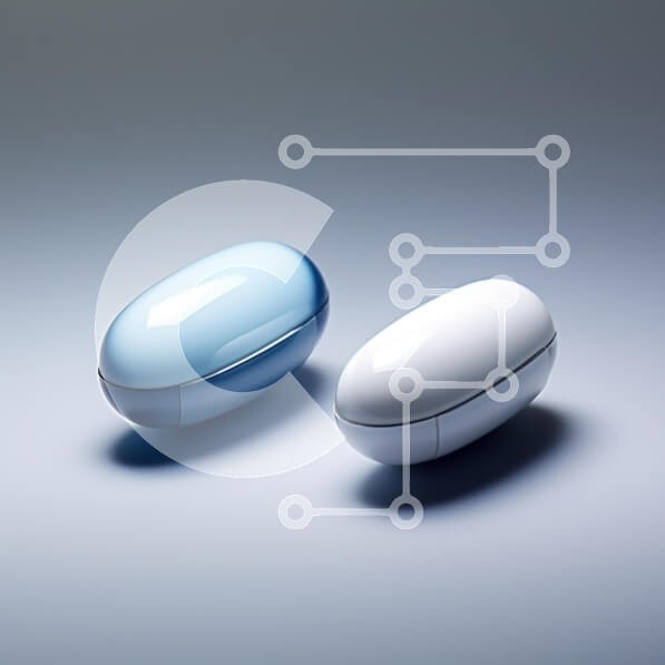 Υπάρχει δυνατότητα προσωποποίησης με δική σας φωτογραφία και προσαρμογής διαστάσεων κατόπιν παραγγελίας. Το συγεκεριμενο Puzzle 10x10 cm – 25 κομμ παρουσιαζει Η εικόνα παρουσιάζει δύο κάψουλες σε σχήμα οβάλ, η μία σε ημιδιαφανές μπλε και η άλλη σε συμπαγές λευκό χρώμα, που στηρίζονται σε μια λεία επιφάνεια. Το φόντο είναι ντεγκραντέ, μεταβαίνοντας από ανοιχτό γκρι σε πιο σκούρο γκρι, δημιουργώντας