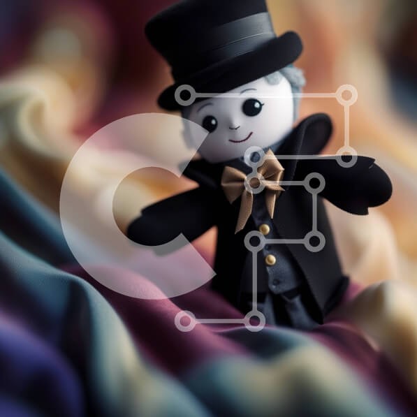 Υπάρχει δυνατότητα προσωποποίησης με δική σας φωτογραφία και προσαρμογής διαστάσεων κατόπιν παραγγελίας. Το συγεκεριμενο Puzzle 10x10 cm – 25 κομμ παρουσιαζει Αυτή η εικόνα παρουσιάζει ένα μικρό ασπρόμαυρο ειδώλιο ενός άνδρα που φορά ένα καπέλο και παπιγιόν. Το ειδώλιο στέκεται σε πολύχρωμο φόντο, δημιουργώντας μια οπτικά ελκυστική αντίθεση μεταξύ του μονόχρωμου αντικειμένου και του ζωντανού σκηνι