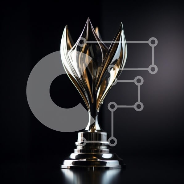 Υπάρχει δυνατότητα προσωποποίησης με δική σας φωτογραφία και προσαρμογής διαστάσεων κατόπιν παραγγελίας. Το συγεκεριμενο Puzzle 10x10 cm – 25 κομμ παρουσιαζει Η εικόνα δείχνει ένα όμορφα σχεδιασμένο τρόπαιο που μοιάζει με λουλούδι ή φλόγα. Η μεταλλική του επιφάνεια λάμπει με ένα μείγμα ασημί και χρυσών αποχρώσεων, αντανακλώντας το φως σε ένα σκούρο φόντο με κλίση. Ο μοναδικός σχεδιασμός του τροπαί