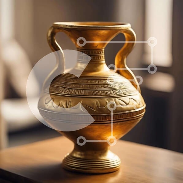 Υπάρχει δυνατότητα προσωποποίησης με δική σας φωτογραφία και προσαρμογής διαστάσεων κατόπιν παραγγελίας. Το συγεκεριμενο Puzzle 10x10 cm – 25 κομμ παρουσιαζει Η εικόνα παρουσιάζει ένα αντίκες χρυσό βάζο που κάθεται σε ένα ξύλινο τραπέζι. Φαίνεται να είναι σε καλή κατάσταση και έχει συντηρηθεί καλά, πιθανώς λόγω παλαιότητας ή χρήσης του. Υπάρχουν πολλά παράθυρα ορατά στο φόντο της εικόνας, υποδηλών