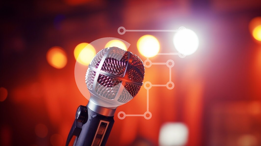 Υπάρχει δυνατότητα προσωποποίησης με δική σας φωτογραφία και προσαρμογής διαστάσεων κατόπιν παραγγελίας. Το συγεκεριμενο Puzzle 10x10 cm – 25 κομμ παρουσιαζει Η εικόνα διαθέτει ένα μικρόφωνο στο προσκήνιο, που πιθανότατα χρησιμοποιείται για εκδήλωση ή παράσταση. Τοποθετείται μπροστά από φωτεινούς προβολείς, υποδεικνύοντας τη χρήση του σε χώρο ψυχαγωγίας ή σκηνή. Το μικρόφωνο φαίνεται καθαρό και γυ