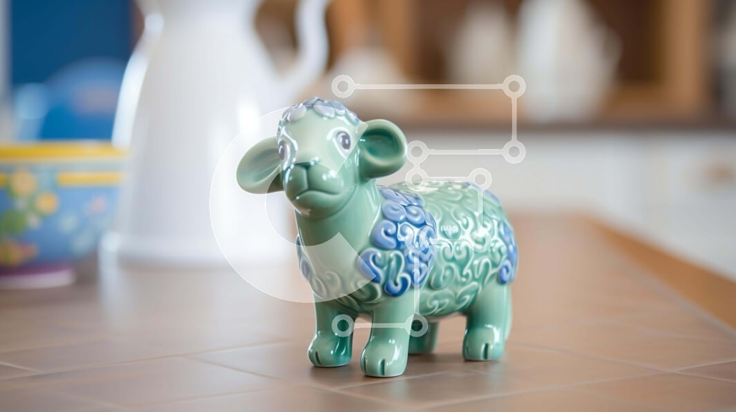 Υπάρχει δυνατότητα προσωποποίησης με δική σας φωτογραφία και προσαρμογής διαστάσεων κατόπιν παραγγελίας. Το συγεκεριμενο Puzzle 10x10 cm – 25 κομμ παρουσιαζει Η εικόνα παρουσιάζει ένα πράσινο και μπλε κεραμικό ειδώλιο προβάτου τοποθετημένο σε έναν πάγκο, με δύο κύπελλα και πολλά κύπελλα διάσπαρτα τριγύρω. Η ιδιότροπη σκηνή προσθέτει μια νότα γοητείας στο δωμάτιο. Ένα μοναδικό Puzzle 10x10 cm – 25