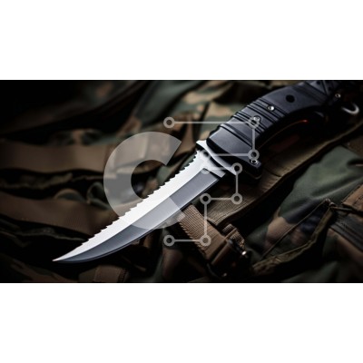 Υπάρχει δυνατότητα προσωποποίησης με δική σας φωτογραφία και προσαρμογής διαστάσεων κατόπιν παραγγελίας. Το συγεκεριμενο Puzzle 10x10 cm – 25 κομμ παρουσιαζει Αυτή η εικόνα παρουσιάζει ένα μαχαίρι που βρίσκεται πάνω από ένα καμουφλαρισμένο σακίδιο στρατού. Το μαχαίρι είναι καλά συντηρημένο με ελάχιστα σημάδια φθοράς. Είναι πιθανό το μαχαίρι να έχει ακονιστεί πρόσφατα, υποδεικνύοντας τη χρήση του σ