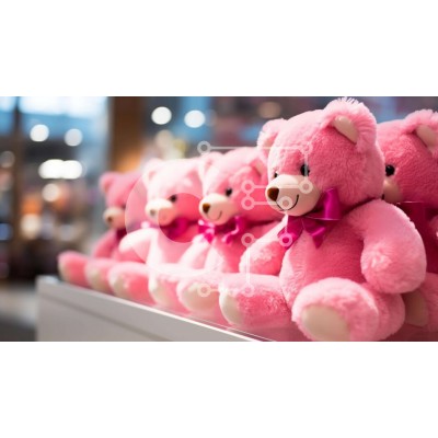 Υπάρχει δυνατότητα προσωποποίησης με δική σας φωτογραφία και προσαρμογής διαστάσεων κατόπιν παραγγελίας. Το συγεκεριμενο Puzzle 10x10 cm – 25 κομμ παρουσιαζει Αυτή η εικόνα δείχνει μια σειρά από ροζ αρκουδάκια ευθυγραμμισμένα σε ένα ράφι, με κάθε αρκουδάκι να φορά ένα ροζ φιόγκο. Υπάρχουν και άλλα λούτρινα ζωάκια στο βάθος, προσθέτοντας στο θέμα του μαγαζιού. Ένα μοναδικό Puzzle 10x10 cm – 25 κομ