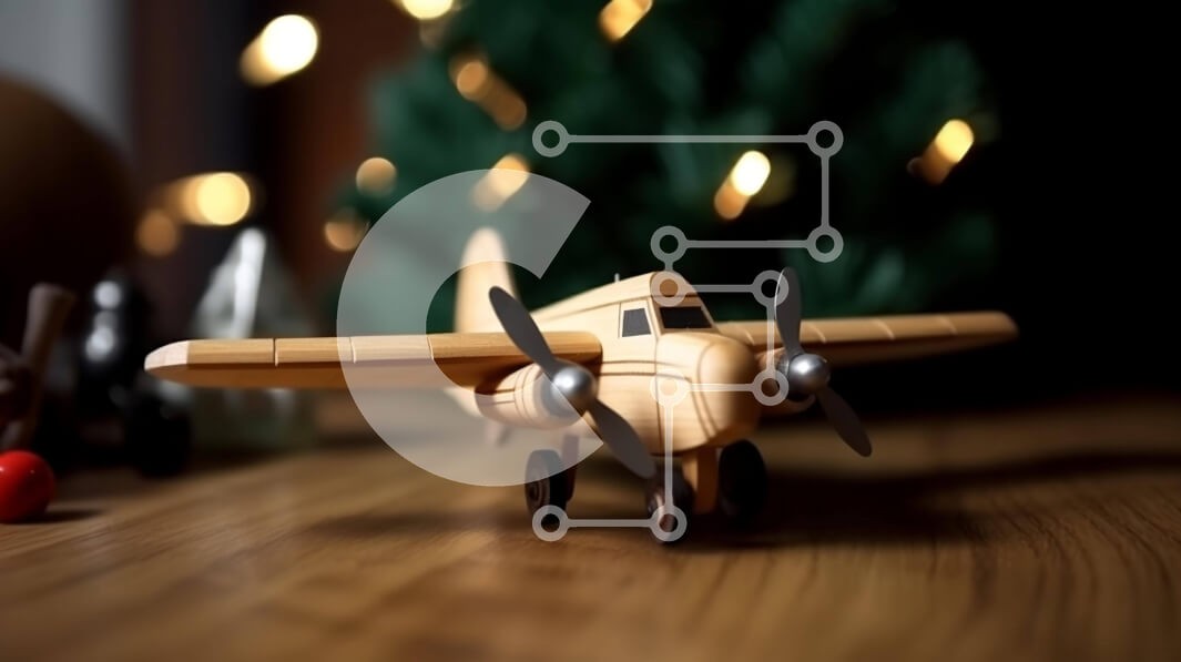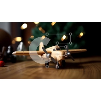 Υπάρχει δυνατότητα προσωποποίησης με δική σας φωτογραφία και προσαρμογής διαστάσεων κατόπιν παραγγελίας. Το συγεκεριμενο Puzzle 10x10 cm – 25 κομμ παρουσιαζει Αυτή η εικόνα παρουσιάζει ένα ξύλινο παιχνίδι αεροπλάνο τοποθετημένο σε μια ξύλινη επιφάνεια, με ένα απαλά θολό εορταστικό πράσινο σκηνικό που υποδηλώνει ένα σκηνικό διακοπών. Το αεροπλάνο είναι κατασκευασμένο από ανοιχτόχρωμο ξύλο, με περίπ