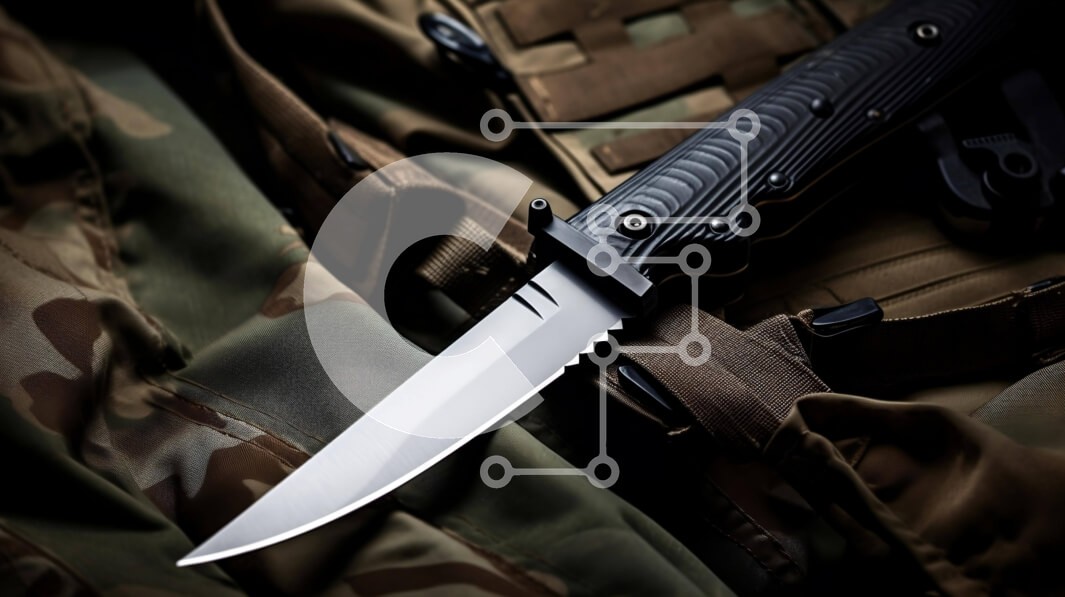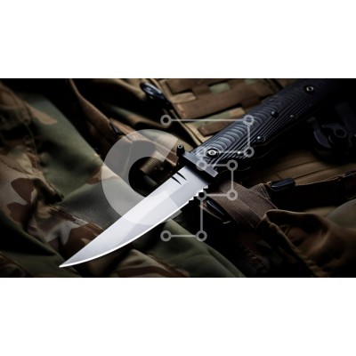 Υπάρχει δυνατότητα προσωποποίησης με δική σας φωτογραφία και προσαρμογής διαστάσεων κατόπιν παραγγελίας. Το συγεκεριμενο Puzzle 10x10 cm – 25 κομμ παρουσιαζει Αυτή η εικόνα δείχνει ένα μαχαίρι στρατιωτικού τύπου τοποθετημένο πάνω από μια στρατιωτική στολή παραλλαγής. Το μαχαίρι είναι σε άριστη κατάσταση, εμφανίζει ελάχιστα σημάδια φθοράς. Φαίνεται ότι έχει ακονιστεί πρόσφατα, καθιστώντας το κατάλλ