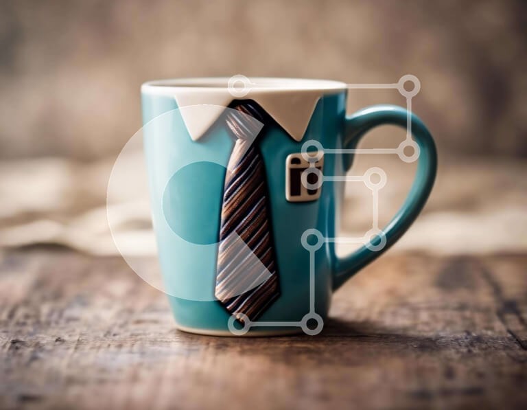Υπάρχει δυνατότητα προσωποποίησης με δική σας φωτογραφία και προσαρμογής διαστάσεων κατόπιν παραγγελίας. Το συγεκεριμενο Puzzle 10x10 cm – 25 κομμ παρουσιαζει Η εικόνα παρουσιάζει μια μπλε κούπα καφέ με μια περίτεχνα σχεδιασμένη γραβάτα σε ένα ξύλινο τραπέζι. Οι λεπτομέρειες του αντρικού πουκάμισου και της γραβάτας είναι ζωγραφισμένες στο κύπελλο, δημιουργώντας ένα μοναδικό και γοητευτικό σχέδιο.