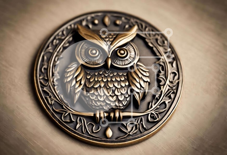 Υπάρχει δυνατότητα προσωποποίησης με δική σας φωτογραφία και προσαρμογής διαστάσεων κατόπιν παραγγελίας. Το συγεκεριμενο Puzzle 10x10 cm – 25 κομμ παρουσιαζει Η εικόνα παρουσιάζει μια διακοσμητική κουκουβάγια σε μια κυκλική μεταλλική επιφάνεια. Το σχέδιο του νομίσματος είναι περίτεχνο και περίτεχνο, με περίπλοκες λεπτομέρειες που προσθέτουν στη συνολική του απήχηση. Θα μπορούσε να χρησιμοποιηθεί γ