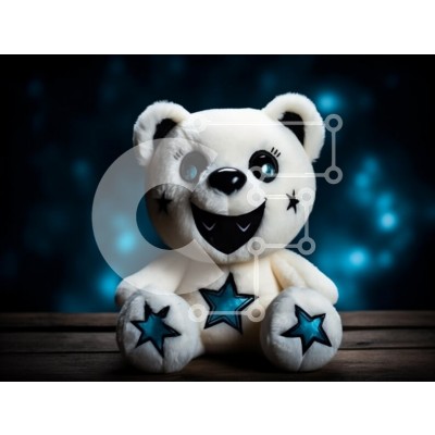 Υπάρχει δυνατότητα προσωποποίησης με δική σας φωτογραφία και προσαρμογής διαστάσεων κατόπιν παραγγελίας. Το συγεκεριμενο Puzzle 10x10 cm – 25 κομμ παρουσιαζει Αυτή η εικόνα παρουσιάζει ένα χαριτωμένο λούτρινο αρκουδάκι με ένα ζωντανό, χαμογελαστό πρόσωπο. Η αρκούδα είναι κυρίως λευκή, στολισμένη με μπλε σχέδια αστεριών στο σώμα της και ένα μεγάλο χαμόγελο που αναδεικνύει την εύθυμη προσωπικότητά τ