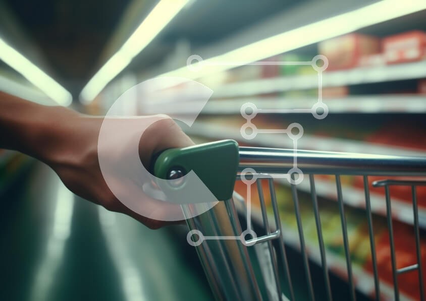 Υπάρχει δυνατότητα προσωποποίησης με δική σας φωτογραφία και προσαρμογής διαστάσεων κατόπιν παραγγελίας. Το συγεκεριμενο Puzzle 10x10 cm – 25 κομμ παρουσιαζει Αυτή η εικόνα καταγράφει μια κοντινή άποψη ενός χεριού που πιάνει τη λαβή ενός καλαθιού αγορών σε ένα διάδρομο παντοπωλείου. Το θολό φόντο αποκαλύπτει ράφια εφοδιασμένα με διάφορα προϊόντα, δημιουργώντας μια πολυσύχναστη ατμόσφαιρα αγορών. Τ
