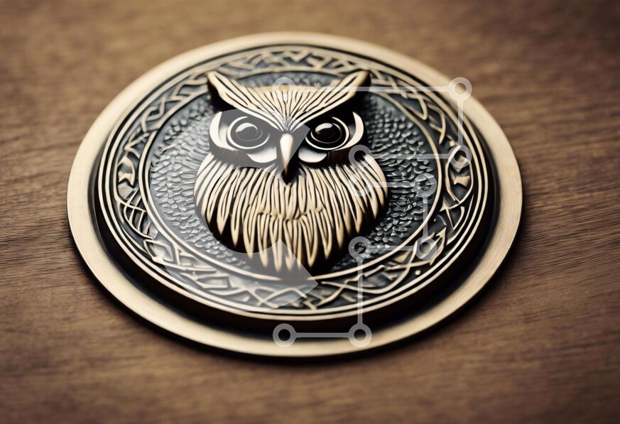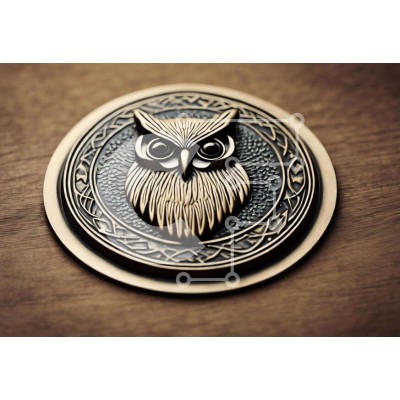 Υπάρχει δυνατότητα προσωποποίησης με δική σας φωτογραφία και προσαρμογής διαστάσεων κατόπιν παραγγελίας. Το συγεκεριμενο Puzzle 10x10 cm – 25 κομμ παρουσιαζει Αυτή η εικόνα παρουσιάζει ένα μεταλλικό κουμπί σε σχήμα κουκουβάγιας σε μια ξύλινη επιφάνεια. Το κουμπί έχει ένα περίπλοκο σχέδιο γύρω από το πρόσωπό του και θα μπορούσε να χρησιμοποιηθεί για λόγους διακόσμησης ή αναγνώρισης. Ένα μοναδικό P