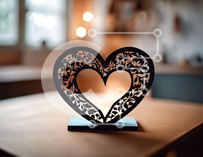 Υπάρχει δυνατότητα προσωποποίησης με δική σας φωτογραφία και προσαρμογής διαστάσεων κατόπιν παραγγελίας. Το συγεκεριμενο Puzzle 10x10 cm – 25 κομμ παρουσιαζει Αυτή η εικόνα παρουσιάζει ένα μεταλλικό γλυπτό σε σχήμα καρδιάς τοποθετημένο σε ένα τραπέζι μπροστά από ένα ανοιχτό παράθυρο. Ο καλά φωτισμένος χώρος ενισχύει τη ρομαντική ατμόσφαιρα, καθιστώντας τον κατάλληλο για τη μετάδοση συναισθημάτων α