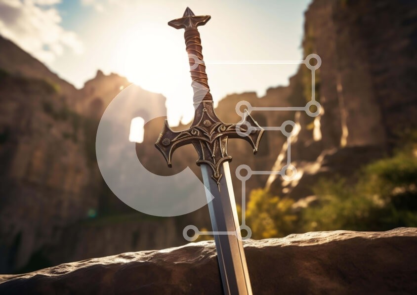 Υπάρχει δυνατότητα προσωποποίησης με δική σας φωτογραφία και προσαρμογής διαστάσεων κατόπιν παραγγελίας. Το συγεκεριμενο Puzzle 10x10 cm – 25 κομμ παρουσιαζει Η εικόνα παρουσιάζει ένα ξίφος που ακουμπάει πάνω από μερικούς βράχους στο πρώτο πλάνο. Το ξίφος φαίνεται να είναι κατασκευασμένο από μέταλλο ή ξύλο και μπορεί να είναι μέρος πανοπλίας ή σετ όπλων. Θα μπορούσε επίσης να χρησιμοποιηθεί ως δια