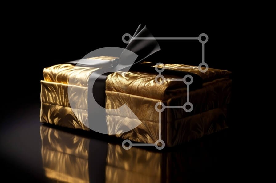 Υπάρχει δυνατότητα προσωποποίησης με δική σας φωτογραφία και προσαρμογής διαστάσεων κατόπιν παραγγελίας. Το συγεκεριμενο Puzzle 10x10 cm – 25 κομμ παρουσιαζει Αυτή η εικόνα διαθέτει ένα γυαλιστερό χρυσό κουτί δώρου με μαύρο φιόγκο στην κορυφή. Το κουτί τοποθετείται σε μια ανακλαστική επιφάνεια, προσθέτοντας βάθος και διάσταση στην εικόνα. Η εικόνα είναι ιδανική για χρήση σε διαφήμιση, μάρκετινγκ κ