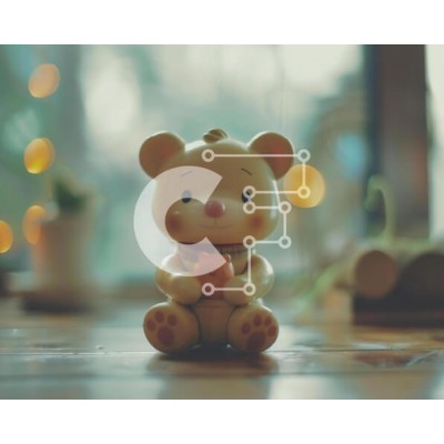 Υπάρχει δυνατότητα προσωποποίησης με δική σας φωτογραφία και προσαρμογής διαστάσεων κατόπιν παραγγελίας. Το συγεκεριμενο Puzzle 10x10 cm – 25 κομμ παρουσιαζει Η εικόνα παρουσιάζει ένα μικρό, κίτρινο ειδώλιο αρκουδάκι που κάθεται πάνω από ένα ανοιχτό ξύλινο τραπέζι. Η αρκούδα-παιχνίδι φαίνεται να κρατά τη δική της γάτα, η οποία φαίνεται στο φόντο της εικόνας. Υπάρχουν πολλά φώτα που περιβάλλουν τη