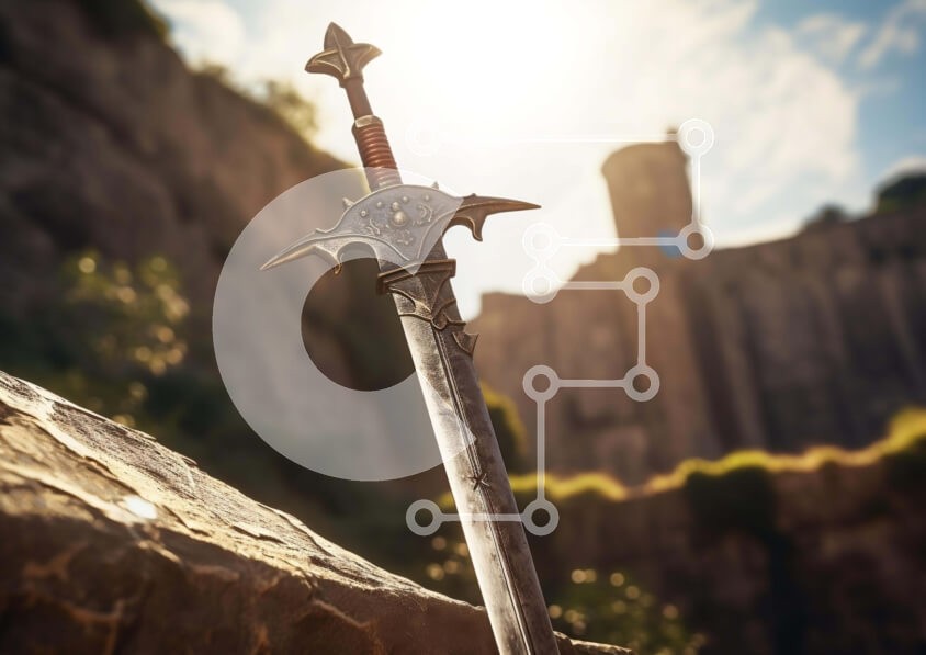 Υπάρχει δυνατότητα προσωποποίησης με δική σας φωτογραφία και προσαρμογής διαστάσεων κατόπιν παραγγελίας. Το συγεκεριμενο Puzzle 10x10 cm – 25 κομμ παρουσιαζει Η εικόνα παρουσιάζει ένα ξίφος που ακουμπάει πάνω από μερικούς βράχους στο πρώτο πλάνο. Το ξίφος φαίνεται να είναι κατασκευασμένο από μέταλλο ή ξύλο και μπορεί να είναι μέρος μιας πανοπλίας ή όπλου. Θα μπορούσε επίσης να χρησιμοποιηθεί ως δι