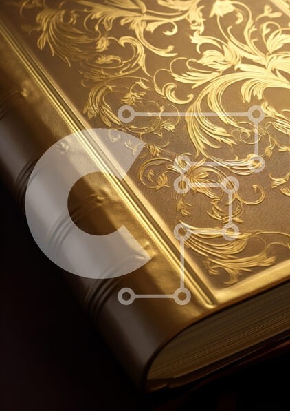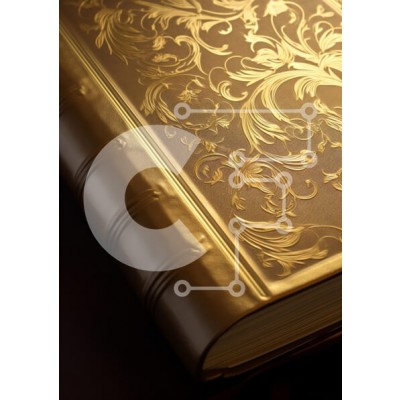 Υπάρχει δυνατότητα προσωποποίησης με δική σας φωτογραφία και προσαρμογής διαστάσεων κατόπιν παραγγελίας. Το συγεκεριμενο Puzzle 10x10 cm – 25 κομμ παρουσιαζει Η εικόνα παρουσιάζει ένα περίπλοκα σχεδιασμένο χρυσό εξώφυλλο βιβλίου με περίτεχνα φυτικά χαρακτικά. Η επιφάνεια του βιβλίου λάμπει στο φως, αναδεικνύοντας την ανάγλυφη υφή και την πολυτελή του εμφάνιση. Το φόντο είναι σκούρο, γεγονός που εν