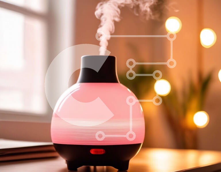 Υπάρχει δυνατότητα προσωποποίησης με δική σας φωτογραφία και προσαρμογής διαστάσεων κατόπιν παραγγελίας. Το συγεκεριμενο Puzzle 10x10 cm – 25 κομμ παρουσιαζει Αυτή η εικόνα διαθέτει έναν μοντέρνο διαχύτη αρώματος που εκπέμπει ατμό, με ένα απαλό ροζ φως να λάμπει από το σώμα του. Ο διαχύτης τοποθετείται σε ένα ξύλινο τραπέζι σε ένα ζεστό περιβάλλον, με θολά φώτα στο φόντο να δημιουργούν μια ζεστή α