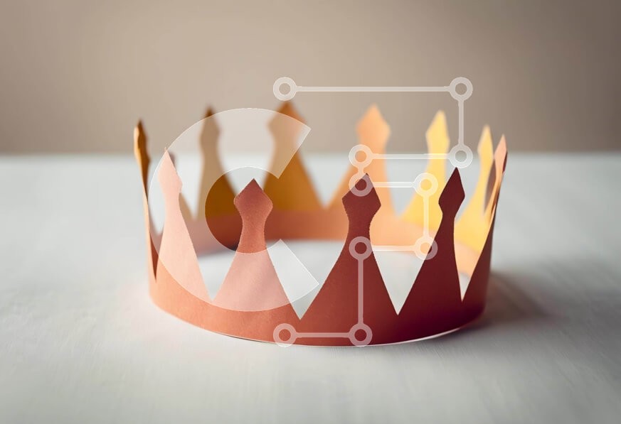 Υπάρχει δυνατότητα προσωποποίησης με δική σας φωτογραφία και προσαρμογής διαστάσεων κατόπιν παραγγελίας. Το συγεκεριμενο Puzzle 10x10 cm – 25 κομμ παρουσιαζει Αυτή η εικόνα παρουσιάζει μια ζωντανή χάρτινη κορώνα σε πορτοκαλί και κίτρινα χρώματα τοποθετημένη πάνω από ένα ημιτελές ξύλινο τραπέζι. Το στέμμα συμβολίζει τα δικαιώματα και μπορεί να χρησιμοποιηθεί για διάφορες εορταστικές περιστάσεις όπω