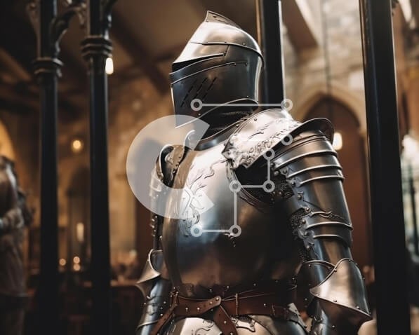 Υπάρχει δυνατότητα προσωποποίησης με δική σας φωτογραφία και προσαρμογής διαστάσεων κατόπιν παραγγελίας. Το συγεκεριμενο Puzzle 10x10 cm – 25 κομμ παρουσιαζει Αυτή η εικόνα παρουσιάζει μια πανοπλία μεσαιωνικού στυλ που εμφανίζεται σε εσωτερικούς χώρους. Η εστίαση είναι στον περίπλοκο μεταλλικό σχεδιασμό της πανοπλίας, τονίζοντας την ιστορική σημασία και τον σκοπό της για προστασία σε μάχες και άλλ