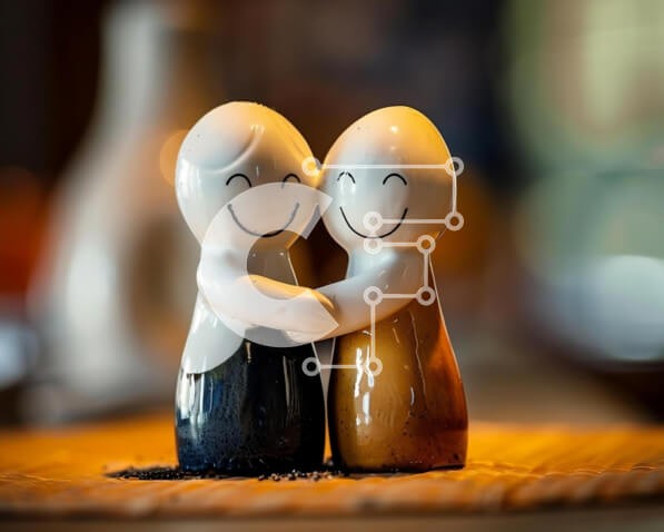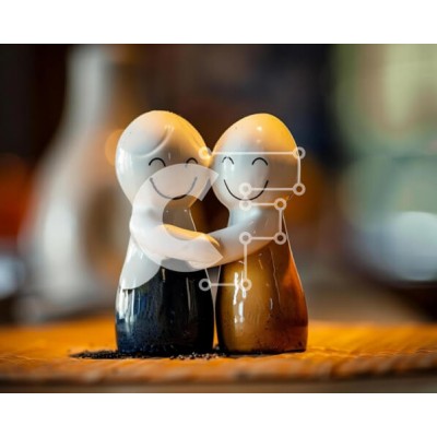 Υπάρχει δυνατότητα προσωποποίησης με δική σας φωτογραφία και προσαρμογής διαστάσεων κατόπιν παραγγελίας. Το συγεκεριμενο Puzzle 10x10 cm – 25 κομμ παρουσιαζει Αυτή η εικόνα παρουσιάζει δύο ειδώλια, το ένα από τα οποία είναι ένα ζευγάρι αγκαλιά. Τοποθετούνται πάνω από ένα άλλο ειδώλιο, δημιουργώντας μια διακοσμητική οθόνη. Επιπλέον, στη σκηνή υπάρχουν μικροαντικείμενα όπως αλατοπιπεροπομπές και σκε