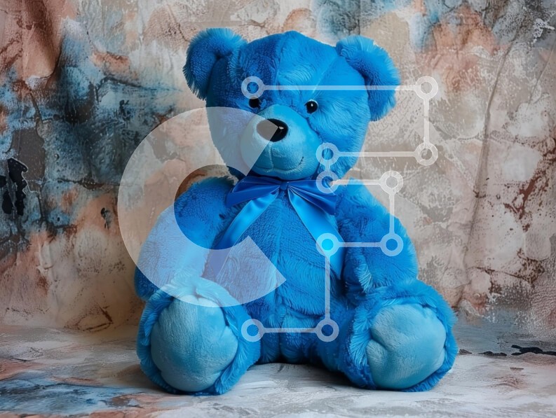 Υπάρχει δυνατότητα προσωποποίησης με δική σας φωτογραφία και προσαρμογής διαστάσεων κατόπιν παραγγελίας. Το συγεκεριμενο Puzzle 10x10 cm – 25 κομμ παρουσιαζει Αυτή η εικόνα παρουσιάζει ένα μεγάλο μπλε αρκουδάκι με μια φωτεινή μπλε κορδέλα γύρω από το λαιμό του. Το αρκουδάκι είναι βελούδινο και απαλό, κάθεται όρθιο σε φόντο με ανάγλυφη υφή που έχει ένα μείγμα γήινων αποχρώσεων, συμπεριλαμβανομένων