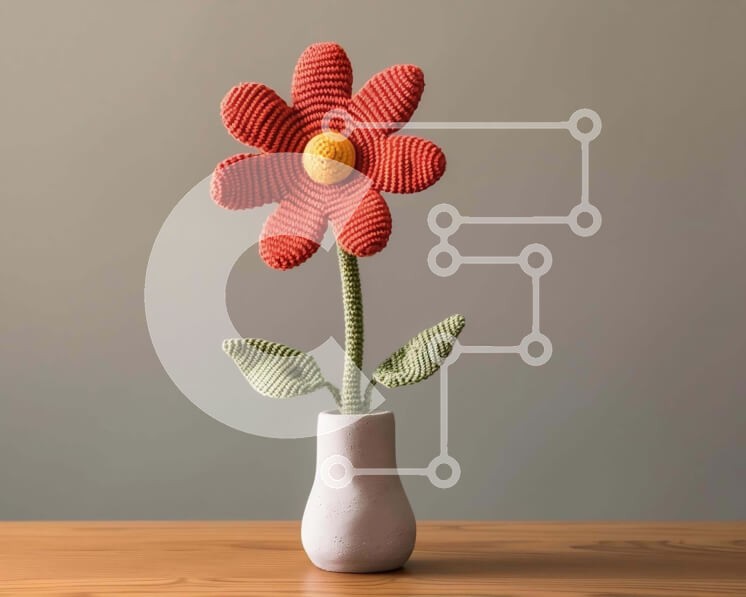 Υπάρχει δυνατότητα προσωποποίησης με δική σας φωτογραφία και προσαρμογής διαστάσεων κατόπιν παραγγελίας. Το συγεκεριμενο Puzzle 10x10 cm – 25 κομμ παρουσιαζει Η εικόνα παρουσιάζει ένα κροσέ λουλούδι που τοποθετείται μέσα σε ένα άδειο λευκό βάζο. Φαίνεται να κάθεται πάνω από το ξύλινο τραπέζι, κάτι που προσθέτει οπτικό ενδιαφέρον στη σκηνή. Επιπλέον, υπάρχουν πολλά άλλα μικρά αντικείμενα στην εικόν