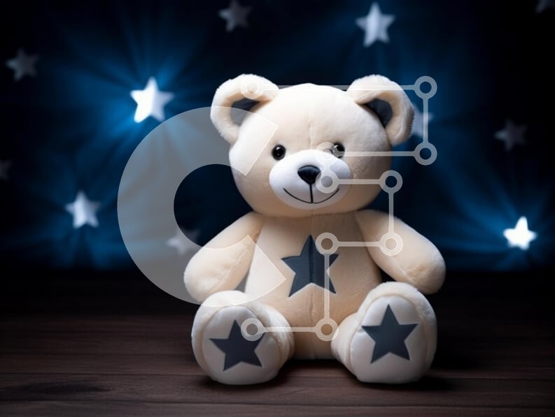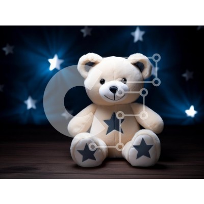 Υπάρχει δυνατότητα προσωποποίησης με δική σας φωτογραφία και προσαρμογής διαστάσεων κατόπιν παραγγελίας. Το συγεκεριμενο Puzzle 10x10 cm – 25 κομμ παρουσιαζει Αυτή η εικόνα παρουσιάζει ένα απαλό, βελούδινο αρκουδάκι που κάθεται σε μια ξύλινη επιφάνεια. Το αρκουδάκι είναι χρωματισμένο σε ανοιχτό μπεζ με γκρι αστέρια στα πόδια και την κοιλιά του. Το φόντο αποτελείται από ένα σκούρο μπλε με εφέ bokeh