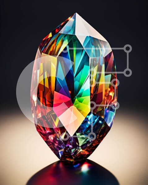 Υπάρχει δυνατότητα προσωποποίησης με δική σας φωτογραφία και προσαρμογής διαστάσεων κατόπιν παραγγελίας. Το συγεκεριμενο Puzzle 10x10 cm – 25 κομμ παρουσιαζει Αυτή η εικόνα παρουσιάζει ένα πολύχρωμο, πολύπλευρο διαμάντι τοποθετημένο πάνω σε ένα αδιαφανές φόντο. Το σχήμα και το ζωηρό χρώμα του διαμαντιού υποδηλώνουν τη δυνατότητα χρήσης του στη δημιουργία κοσμημάτων ή διακοσμητικών αντικειμένων. Έχ