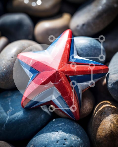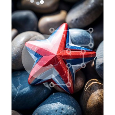 Υπάρχει δυνατότητα προσωποποίησης με δική σας φωτογραφία και προσαρμογής διαστάσεων κατόπιν παραγγελίας. Το συγεκεριμενο Puzzle 10x10 cm – 25 κομμ παρουσιαζει Η εικόνα παρουσιάζει ένα κόκκινο, λευκό και μπλε αντικείμενο σε σχήμα αστεριού τοποθετημένο πάνω από βράχους, πιθανότατα ένα στολίδι ή διακόσμηση. Μικρές πέτρες διάσπαρτες γύρω υποδηλώνουν σκόπιμη τοποθέτηση. Ένα μοναδικό Puzzle 10x10 cm –