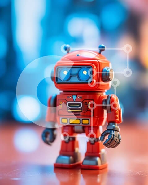 Υπάρχει δυνατότητα προσωποποίησης με δική σας φωτογραφία και προσαρμογής διαστάσεων κατόπιν παραγγελίας. Το συγεκεριμενο Puzzle 10x10 cm – 25 κομμ παρουσιαζει Αυτή η εικόνα δείχνει ένα μικρό κόκκινο ρομπότ με στρογγυλό σώμα, δύο χέρια και δύο πόδια. Το ρομπότ έχει ένα μεγάλο κεφάλι με δύο μαύρα μάτια και ένα μικρό στόμα. Φαίνεται να στέκεται σε ξύλινη επιφάνεια. Το φόντο είναι θολό, δημιουργώντας