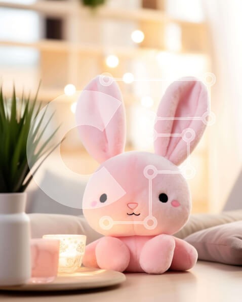 Υπάρχει δυνατότητα προσωποποίησης με δική σας φωτογραφία και προσαρμογής διαστάσεων κατόπιν παραγγελίας. Το συγεκεριμενο Puzzle 10x10 cm – 25 κομμ παρουσιαζει Αυτή η εικόνα παρουσιάζει ένα ροζ λαγουδάκι με λούτρινο ζώο που κάθεται πάνω από ένα τραπέζι. Μπροστά από το λαγουδάκι υπάρχουν δύο κηροπήγια, που υποδηλώνουν ότι μπορούν να χρησιμοποιηθούν για να δημιουργήσουν μια ζεστή και φιλόξενη ατμόσφα