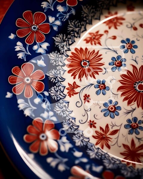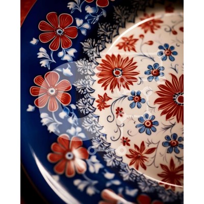 Υπάρχει δυνατότητα προσωποποίησης με δική σας φωτογραφία και προσαρμογής διαστάσεων κατόπιν παραγγελίας. Το συγεκεριμενο Puzzle 10x10 cm – 25 κομμ παρουσιαζει Η εικόνα παρουσιάζει ένα μπλε, κόκκινο και λευκό πιάτο με λουλουδάτα σχέδια. Το πιάτο τοποθετείται πάνω από μια άγνωστη ξύλινη επιφάνεια, υποδηλώνοντας ότι θα μπορούσε να χρησιμοποιηθεί για φαγητό ή σερβίρισμα φαγητού. Φαίνεται να είναι σε κ