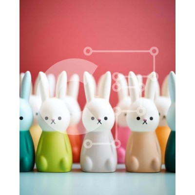 Υπάρχει δυνατότητα προσωποποίησης με δική σας φωτογραφία και προσαρμογής διαστάσεων κατόπιν παραγγελίας. Το συγεκεριμενο Puzzle 10x10 cm – 25 κομμ παρουσιαζει Αυτή η εικόνα παρουσιάζει μια ομάδα μικρών, πολύχρωμων ειδωλίων κουνελιών που είναι τακτοποιημένα παραταγμένα στο τραπέζι. Τα κουνελάκια έρχονται σε διάφορα χρώματα, όπως λευκό, ροζ, κίτρινο, μπλε και πράσινο. Μερικά από τα κουνέλια φαίνοντα