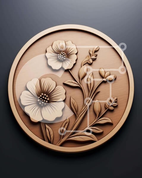 Υπάρχει δυνατότητα προσωποποίησης με δική σας φωτογραφία και προσαρμογής διαστάσεων κατόπιν παραγγελίας. Το συγεκεριμενο Puzzle 10x10 cm – 25 κομμ παρουσιαζει Η εικόνα παρουσιάζει ένα ξύλινο νόμισμα στολισμένο με λουλούδια και φύλλα, σχεδιασμένο με έμπνευση από τη φύση. Μπορεί να παρατηρηθεί στην αυθεντική του κατάσταση ή σε τρισδιάστατες αποδόσεις, κατάλληλες για τον εορτασμό σημαντικών γεγονότων
