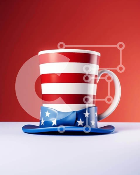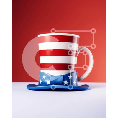 Υπάρχει δυνατότητα προσωποποίησης με δική σας φωτογραφία και προσαρμογής διαστάσεων κατόπιν παραγγελίας. Το συγεκεριμενο Puzzle 10x10 cm – 25 κομμ παρουσιαζει Η εικόνα παρουσιάζει μια κούπα και καπέλο καφέ με πατριωτικό θέμα με σχέδιο αμερικανικής σημαίας στην κορυφή. Τοποθετείται μπροστά από κόκκινο φόντο, υποδηλώνοντας ότι θα μπορούσε να χρησιμοποιηθεί για να σερβίρετε ποτά ή ποτά. Πολλά αστέρια