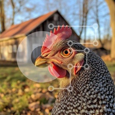 Υπάρχει δυνατότητα προσωποποίησης με δική σας φωτογραφία και προσαρμογής διαστάσεων κατόπιν παραγγελίας. Το συγεκεριμενο Puzzle 10x10 cm – 25 κομμ παρουσιαζει Αυτή η εικόνα παρουσιάζει ένα κοντινό πλάνο ενός κόκορα με εντυπωσιακά χαρακτηριστικά, όπως μια προεξέχουσα χτένα και ζωηρά πορτοκαλί μάτια. Τα στικτά φτερά του κόκορα προσθέτουν υφή στο προφίλ του, ενώ ένας ρουστίκ αχυρώνας στο φόντο προσφέ