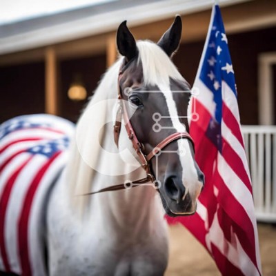 Υπάρχει δυνατότητα προσωποποίησης με δική σας φωτογραφία και προσαρμογής διαστάσεων κατόπιν παραγγελίας. Το συγεκεριμενο Puzzle 10x10 cm – 25 κομμ παρουσιαζει Η εικόνα απεικονίζει ένα λευκό και καφέ άλογο να στέκεται δίπλα σε μια αμερικανική σημαία. Το άλογο είναι τυλιγμένο με κόκκινες, λευκές και μπλε κουβέρτες, υποδηλώνοντας ότι κάποιος το φροντίζει. Μπορεί επίσης να είναι μέρος μιας εκδήλωσης π