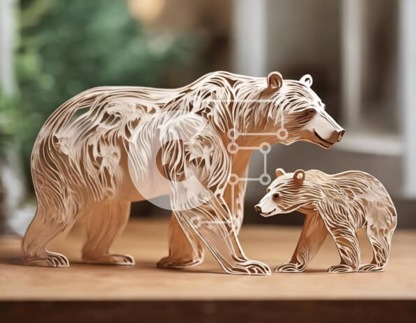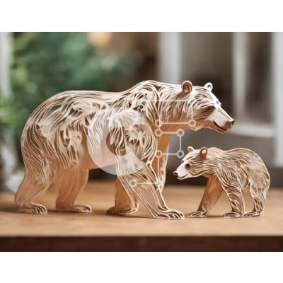 Υπάρχει δυνατότητα προσωποποίησης με δική σας φωτογραφία και προσαρμογής διαστάσεων κατόπιν παραγγελίας. Το συγεκεριμενο puzzle παρουσιαζει Αυτή η εικόνα παρουσιάζει δύο ξύλινα γλυπτά αρκούδας, με το ένα να αντιπροσωπεύει μια μητέρα αρκούδα και το άλλο το μικρό της. Τα γλυπτά στοιβάζονται το ένα πάνω στο άλλο, δημιουργώντας μια τρυφερή και στοργική πόζα. Οι αρκούδες απεικονίζονται σε κοντινή απόσταση, με τα κεφάλι