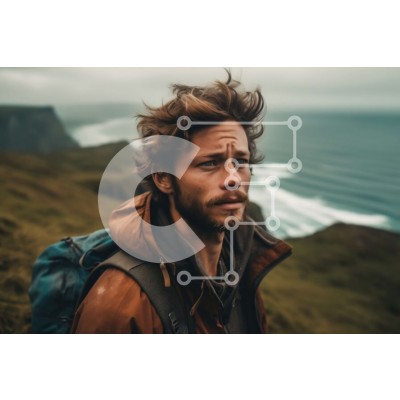 Υπάρχει δυνατότητα προσωποποίησης με δική σας φωτογραφία και προσαρμογής διαστάσεων κατόπιν παραγγελίας. Το συγεκεριμενο puzzle παρουσιαζει Αυτή η φωτογραφία δείχνει έναν άνδρα να στέκεται σε έναν βραχώδη βράχο με θέα στον ωκεανό. Φοράει ένα καφέ σακάκι και μπεζ παντελόνι, έχει ακατάστατα, κυματιστά μαλλιά και ατημέλητο μούσι. Η έκφραση του προσώπου του φαίνεται κουρασμένη και ανήσυχη, με αυλακωμένα φρύδια και γυρ