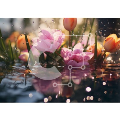 Υπάρχει δυνατότητα προσωποποίησης με δική σας φωτογραφία και προσαρμογής διαστάσεων κατόπιν παραγγελίας. Το συγεκεριμενο puzzle παρουσιαζει Η εικόνα παρουσιάζει ένα μπουκέτο από ροζ τουλίπες που επιπλέουν στο νερό με σταγόνες νερού να τις περιβάλλουν, υποδηλώνοντας πρόσφατες βροχοπτώσεις. Τα λουλούδια φαίνεται να ανθίζουν, πιθανότατα την άνοιξη ή τις αρχές του καλοκαιριού. Ένα μοναδικό puzzle που συνδυάζει ποιότη