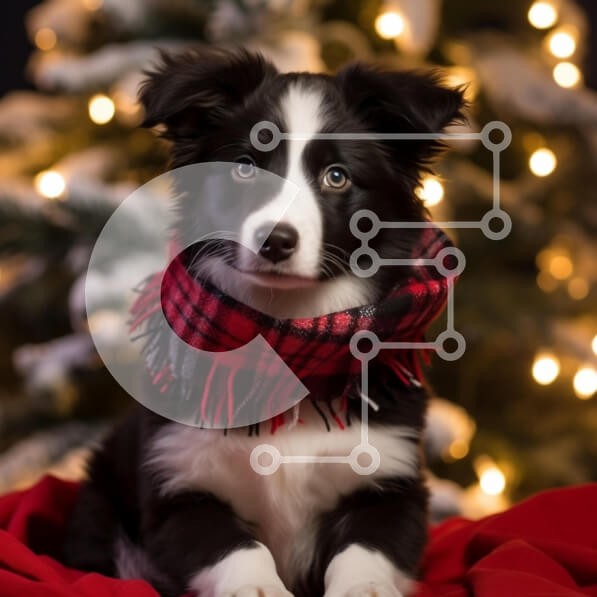Υπάρχει δυνατότητα προσωποποίησης με δική σας φωτογραφία και προσαρμογής διαστάσεων κατόπιν παραγγελίας. Το συγεκεριμενο Puzzle 10x10 cm – 25 κομμ παρουσιαζει Η εικόνα δείχνει ένα χαριτωμένο ασπρόμαυρο κουτάβι που κάθεται σε μια κόκκινη κουβέρτα, φορώντας ένα κόκκινο και μαύρο καρό μαντήλι. Το φόντο είναι στολισμένο με ένα όμορφα στολισμένο χριστουγεννιάτικο δέντρο, με απαλά λευκά φώτα που λάμπουν