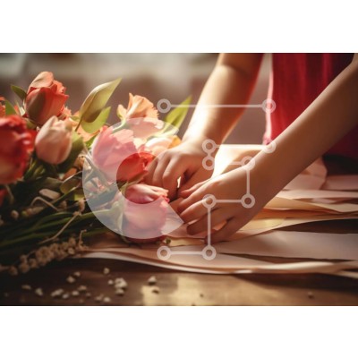 Υπάρχει δυνατότητα προσωποποίησης με δική σας φωτογραφία και προσαρμογής διαστάσεων κατόπιν παραγγελίας. Το συγεκεριμενο puzzle παρουσιαζει Η εικόνα απεικονίζει ένα άτομο που εργάζεται με λουλούδια, πιθανώς για να τα προετοιμάσει για μια εκδήλωση ή γιορτή. Ένα μπουκέτο με ροζ και πορτοκαλί λουλούδια μπορεί να δει κανείς στο τραπέζι μπροστά από το άτομο, καθώς και κάποια άλλα διακοσμητικά αντικείμενα, όπως κορδέλες