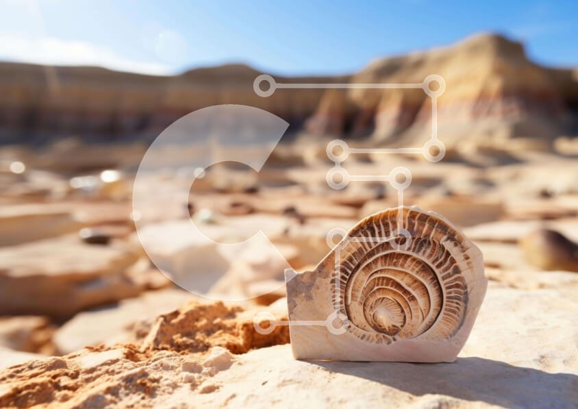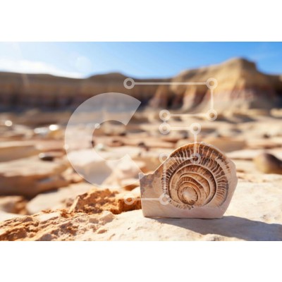 Υπάρχει δυνατότητα προσωποποίησης με δική σας φωτογραφία και προσαρμογής διαστάσεων κατόπιν παραγγελίας. Το συγεκεριμενο puzzle παρουσιαζει Η εικόνα παρουσιάζει ένα κέλυφος αμμωνίτη που κάθεται στην κορυφή ενός βράχου στην έρημο. Πιθανότατα να έχει βρεθεί κατά την ανασκαφή, καθώς φαίνεται άθικτο και καλοδιατηρημένο. Υπάρχουν αρκετοί βράχοι που περιβάλλουν το κέλυφος, γεγονός που μπορεί να υποδηλώνει ότι έχει εκτεθ