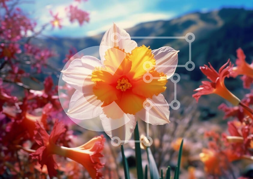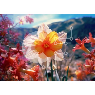 Υπάρχει δυνατότητα προσωποποίησης με δική σας φωτογραφία και προσαρμογής διαστάσεων κατόπιν παραγγελίας. Το συγεκεριμενο puzzle παρουσιαζει Η εικόνα δείχνει ένα ζωντανό πορτοκαλί και κίτρινο λουλούδι ασφόδελου που ανθίζει σε ένα χωράφι με πολύχρωμα λουλούδια με βουνά στο φόντο, υποδηλώνοντας ένα ανοιξιάτικο ή νωρίς καλοκαιρινό σκηνικό. Γύρω από τον κεντρικό ασφόδελο υπάρχουν μαργαρίτες, γεράνια και τουλίπες, που α