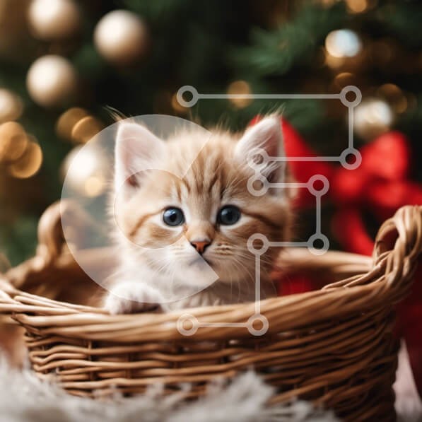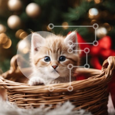 Υπάρχει δυνατότητα προσωποποίησης με δική σας φωτογραφία και προσαρμογής διαστάσεων κατόπιν παραγγελίας. Το συγεκεριμενο Puzzle 10x10 cm – 25 κομμ παρουσιαζει Αυτή η εικόνα παρουσιάζει ένα αξιολάτρευτο πορτοκαλί γατάκι που κάθεται σε ένα καλάθι δίπλα σε ένα όμορφα στολισμένο χριστουγεννιάτικο δέντρο. Το γατάκι έχει τα μάτια του ανοιχτά και κοιτάζει την κάμερα, υποδηλώνοντας περιέργεια και άνεση στ