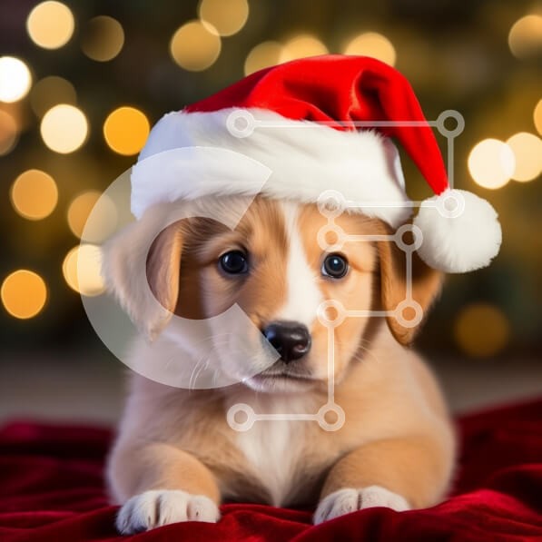 Υπάρχει δυνατότητα προσωποποίησης με δική σας φωτογραφία και προσαρμογής διαστάσεων κατόπιν παραγγελίας. Το συγεκεριμενο Puzzle 10x10 cm – 25 κομμ παρουσιαζει Η εικόνα απεικονίζει ένα αξιολάτρευτο κουτάβι που φορά ένα εορταστικό κόκκινο και λευκό καπέλο του Άγιου Βασίλη, ξαπλωμένο σε ένα πλούσιο κόκκινο ύφασμα. Τα μεγάλα, εκφραστικά μπλε μάτια του αιχμαλωτίζουν την προσοχή του θεατή, μεταφέροντας
